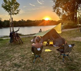 Sunday August 7, 2022, 95 km (59 miles) – Total so far: 2,707 km (1,682 miles) Today we cycled in three countries! We had a great sleep last night despite our neighbours at the campsite cooking …