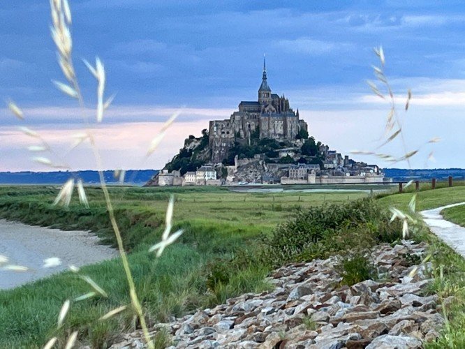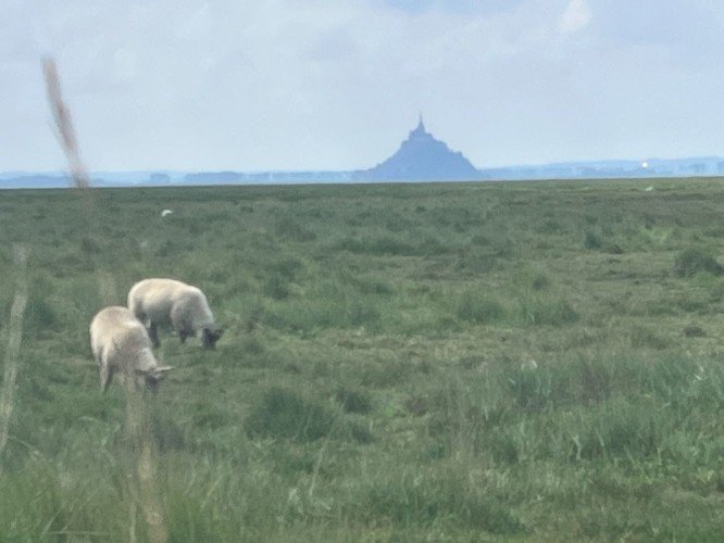We cycled 51 kms today and are at the campground closest to the Mont-Saint-Michel. Thunder is rumbling all around us and the skies are very black.