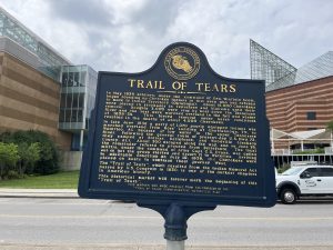 After our refreshments we took a walk around the town and down to the Tennessee River where we came across the start of the Trail of Tears. This was a trail the Native Americans were forced to take as they were removed from their lands and forced to re-settle in the Indian Reservation in Oklahoma.