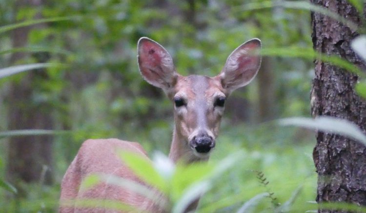 “Maybe it’s be scratched up by a bear,” I said. Right at that moment, something big darted from the bushes. I screamed, Mike laughed. We had frightened a deer!