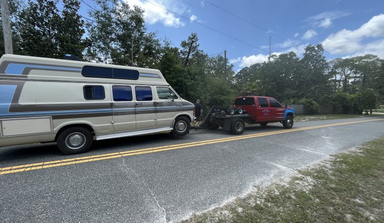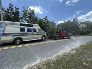 Then Mike got in the car and tried to start it, and it wouldn’t start. It turned over like it was going to start, but didn’t fire. We kind of panicked a bit, and rang roadside assistance, They said it would be 1.5 hours before a tow truck arrived. But then, 1 hour later they sent and updated text saying it was now 77 minutes before it would arrive. Then again 30 minutes later it said it would now be 78 minutes as it was coming from Tallahassee.