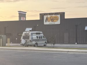 It’s pretty common to be able to park overnight in Cracker Barrell and Walmart carparks. There are two others camping here tonight.