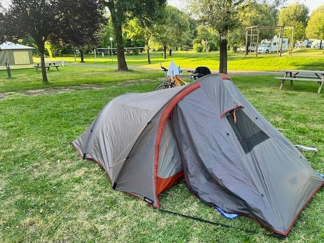 We’re at a nice camping spot tonight. The have a marquee where campers can shelter and cook a meal. They have a gas burner, fridge and microwave. These are things we take for granted in NZ, but it’s very rare in France.