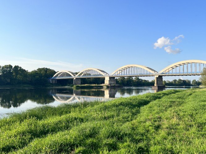 We found a nice campground beside the river for only 13 euros. It’s the summer solstice here and there’s a good band playing next to the camp.