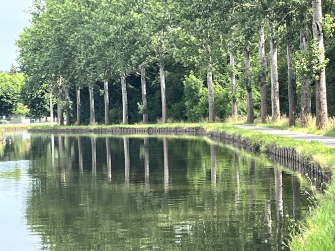 It was an amazing day today, following the nice flat canal paths. We got to the town we’d planned to camp at after 45 kms but we were loving the day so much, we continued on. We ended up doing 70 kms today and feel pretty good for it.