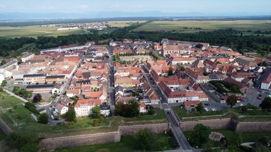 We had a nice night in the campground of Neuf-Brisach. When we woke up in the morning, Mike had been doing some research and the town we are in is a walled town, and to look at it from the air, it’s a perfect hexagon. So this morning we took some drone shots, which we’ll put in our video from this day.