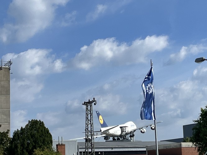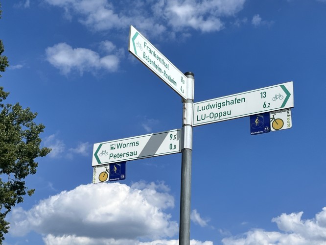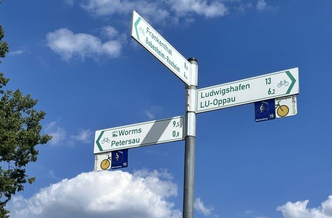 The day started out well, nice cycle paths, but a bad head wind and we struggled to get over 17 kms/hr. But it was shaded and cool, and quite nice. We stopped for longer than we should have in the town of Speyers. I was drawn in by an aeroplane museum, which if I knew we didn’t have to cycle 70 kms, we would have stopped and spent the day exploring it. We snapped a few photos from the outside and moved on.