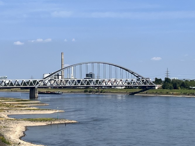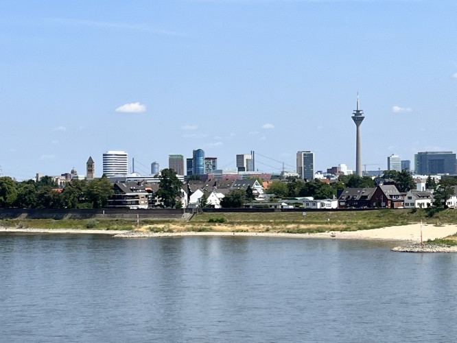 We knew there was a big industrial section coming up on the Rhine route between Düsseldorf and Duisburg with very little camping or accommodation. We had decided the previous evening to only cycle 25 kms and spend the day looking around Düsseldorf. But when we woke up the day was stunning and the thought of spending it in a big city with crowds of people didn’t appeal.