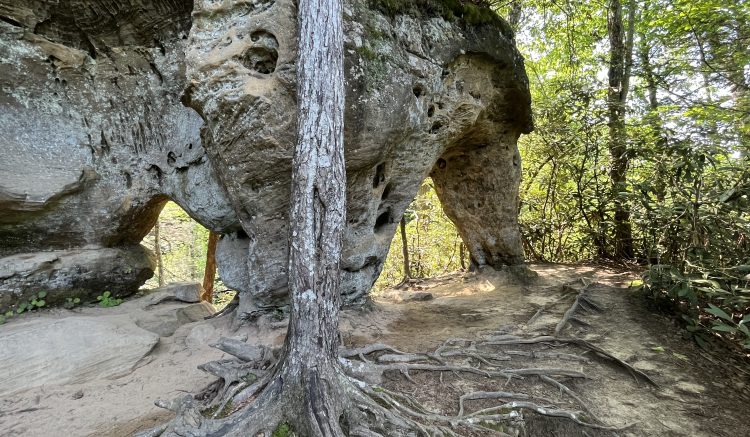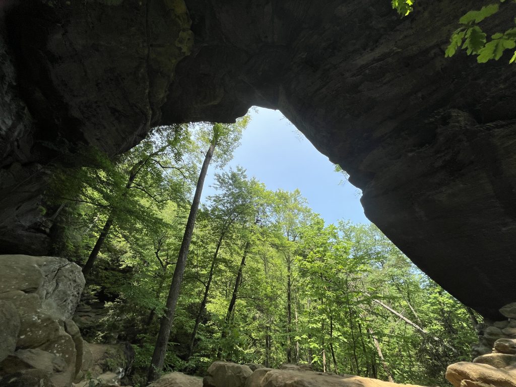We are now in Red River Gorge and it’s a gorgeous day. We set off for a couple of hikes from the campground, trying not to worry too much about the bears and ticks which we’d been warned about at the campground. It seems like snakes might be a worry too, with four venonous types here. Mike reckons it’s too cold for them. Mike has no idea.