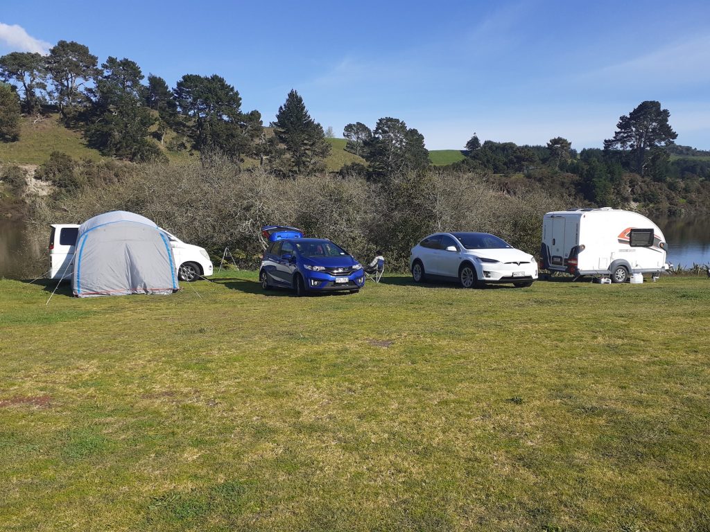 The campsite lies on the edge of Lake Karapiro and has free gas fired bbq’s, toilets and even hot showers.